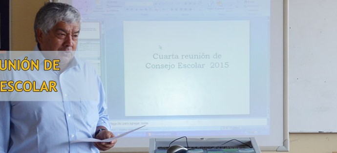 El día Jueves 07 de Enero de 2016 se llevó a cabo la Cuarta Reunión de Consejo Escolar, en ella se entregaron los resultados más importantes del proceso directivo y pedagógico curricular del año recién pasado. A su vez, se entregó valiosa información en las siguientes áreas: Orientación, Inspectoria General, Convivencia Escolar, PIE (Proyecto de Integración Educativa), Talleres Extraprogramaticos, Medio Ambiente; por parte de sus profesores encargados.