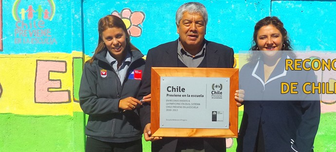 Nuestra Escuela Ambrosio O’Higgins tiene el agrado de recibir de parte del Gobierno de Chile un reconocimiento por su destacada participación en el programa Chile Previene de Senda (Servicio Nacional para la Prevención y Rehabilitación del Consumo de Drogas y Alcohol), que se llevó a cabo entre los años 2010 a 2013. Fue un aporte de gran importancia para ayudar a los alumnos y alumnas que estaban en riesgo evidente de caer en el consumo o tráfico de Drogas.